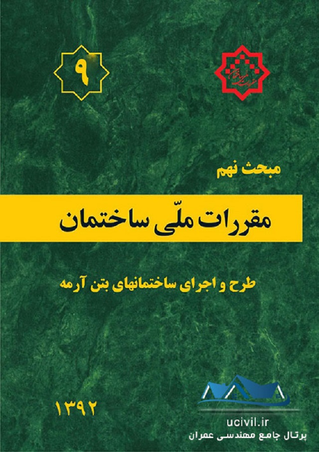 مبحث ۹ مقررات ملی ساختمان اختصاص دارد به طرح و اجرای ساختمان های بتن آرمه. بطور کلی مقررات ملی ساختمان مجموعه ای است از ضوابط فنی، اجرایی در زمینه طراحی، نظارت و اجرای عملیات ساختمانی اعم از تخریب، نوسازی، توسعه بنا، تعمیر و مرمت اساسی، تغییر کاربری و بهره برداری از ساختمان که به منظور تامین ایمنی، بهره دهی مناسب، آسایش، بهداشت و صرفه اقتصادی فرد و جامعه وضع می گردد.